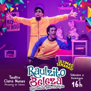 LISTA da REDE INFANTIL- LÚDICO - MUSICAL RAULZITO BELEZA - RAUL SEIXAS PARA CRIANÇAS Teatro Clara Nunes 3° Piso do Shopping da Gávea Rua Marquês de São Vicente, 52 Gávea Sábado (01/02) às 16H Domingo (02/02) às 16H Nomes na Lista da REDE, pagam 25, (em dinheiro), direto na bilheteria.