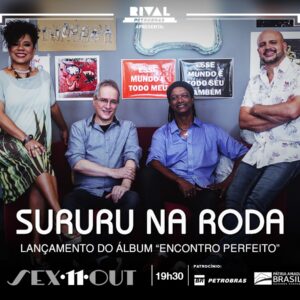 LISTA da REDE ÚNICA APRESENTAÇÃO SURURU NA RODA LANÇAMENTO DO ÁLBUM ENCONTRO PERFEITO Teatro Rival Rua Álvaro Alvim, 33 Centro – Metrô Cinelândia Sexta (11/10) às 19H30 Nomes na Lista da REDE, pagam 20, direto na bilheteria.
