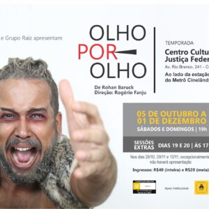 LISTA da REDE TEMA ATUAL OLHO POR OLHO Centro Cultural da Justiça Federal Av. Rio Branco, 241 – Centro Centro – Metrô Cinelândia Sábados e Domingos às 19H Nomes na Lista da REDE, pagam 10, direto na bilheteria.