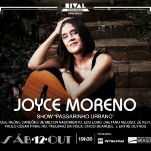 LISTA da REDE ÚNICA APRESENTAÇÃO IMPERDÍVEL JOYCE MORENO NO SHOW PASSARINHO URBANO* Teatro Rival Rua Álvaro Alvim, 33 Centro – Metrô Cinelândia Sábado (12/10) às 19H30 Nomes na Lista da REDE, pagam 20, direto na bilheteria.