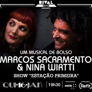 LISTA da REDE ÚNICA APRESENTAÇÃO SHOW ESTAÇÃO PRIMEIRA MARCOS SACRAMENTO & NINA WIRTTI Teatro Rival Rua Álvaro Alvim, 33 Centro – Metrô Cinelândia Quinta (16/01) às 19H30 Nomes na Lista da REDE, pagam 20, direto na bilheteria.