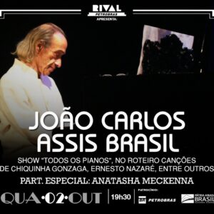 LISTA da REDE ÚNICA APRESENTAÇÃO IMPERDÍVEL SHOW TODOS OS PIANOS JOÃO CARLOS ASSIS BRASIL PARTICIPAÇÃO ESP: ANATSHA MECKENNA Teatro Rival Rua Álvaro Alvim, 33 Centro – Metrô Cinelândia Quarta (02/10) às 19H30 Nomes na Lista da REDE, pagam 15, direto na bilheteria.