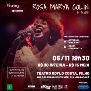 LISTA da REDE ÚNICA APRESENTAÇÃO SHOW ROSA MARYA COLIN - IN BLUES Teatro Odylo Costa Filho R. São Francisco Xavier, 524 - Maracanã Quarta (06/11) às 19:30H Nomes na Lista da REDE, pagam 10, (em dinheiro) direto na bilheteria.
