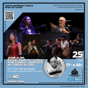 LISTA da REDE ÚNICA APRESENTAÇÃO IMPERDÍVEL UM TOM DE SAUDADE Centro da Música Carioca Artur da Tavola Rua Conde de Bonfim, 824 - Tijuca Sábado (25/01) às 17 e às 20H Nomes na Lista da REDE, pagam 15, direto na bilheteria.