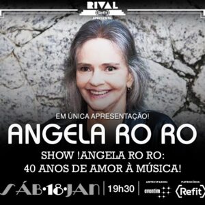 LISTA da REDE ÚNICA APRESENTAÇÃO SHOW 40 ANOS DE AMOR A MÚSICA *ANGELA RO RO Teatro Rival Rua Álvaro Alvim, 33 Centro – Metrô Cinelândia Sábado (18/01) às 19H30 Nomes na Lista da REDE, pagam 25, direto na bilheteria.