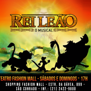 LISTA da REDE INFANTIL - LÚDICO REI LEÃO - O MUSICAL Teatro Fashion Mall Shopping Fashion Mall São Conrado Sábado (07/03) às 17H Domingo (08/03) às 17H Nomes na Lista da REDE, pagam 20, (em dinheiro), direto na bilheteria*