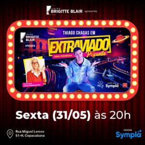 LISTA da REDE IMPERDÍVEL VAMOS RIR ??? COMÉDIA THIAGO CHAGAS em: EXTRAVIADO Teatro Brigitte Blair Rua Miguel Lemos, 51 - Loja H Copacabana Sexta (31/05) às 20H Somente com o Nome na Lista da ong REDE, pagam 25, (pode cartão)