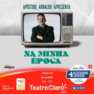 LISTA da REDE IMPERDÍVEL COMÉDIA APÓSTOLO ARNALDO apresenta: NA MINHA ÉPOCA Teatro Claro Rua Siqueira Campos, 143 Copacabana - Metrô Siqueira Campos Quinta (30/05) às 20H Somente com o Nome na Lista da ong REDE, pagam 25, {EM DINHEIRO} - Lugares na Plátéia
