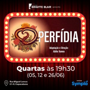 LISTA da REDE IMPERDÍVEL ESTRÉIA TEATRO ARTE DA OBRA de NELSON RODRIGUES PERFÍDIA Teatro Brigitte Blair Rua Miguel Lemos, 51 - Loja H Copacabana Quarta (05/06) às 19H30 Somente com o Nome na Lista da ong REDE, pagam 25, (pode cartão)
