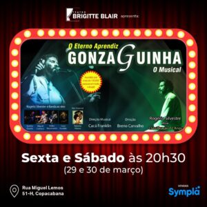 LISTA da REDE IMPERDÍVEL SHOW O ETERNO APRENDIZ GONZAGUINHA O MUSICAL Teatro Brigitte Blair Rua Miguel Lemos, 51 - Loja H Copacabana Sexta (29/03) às 20H30 Sábado (30/03) às 20H30 Somente com o Nome na Lista da ong REDE, pagam 25, (pode cartão)