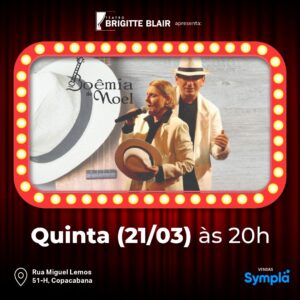 LISTA da REDE IMPERDÍVEL SHOW BOEMIA de NOEL Teatro Brigitte Blair Rua Miguel Lemos, 51 - Loja H Copacabana Quinta (21/03) às 20H Somente com o Nome na Lista da ong REDE, pagam 25, (pode cartão)