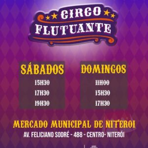 REDE CONVIDA TOTALMENTE GRATUITO IMPERDÍVEL CIRCO EMOCIONANTE CIRCO FLUTUANTE - VARIETÊ Mercado Municipal de Niterói Av. Feliciano Sodré 488 Centro Niterói Sábado (27/04) às 15H30 Sábado (27/04) às 17H30 Sábado (27/04) às 19H30 Domingo (28/04) às 11H Domingo (28/04) às 15H30 Domingo (28/04) às 17H30 Somente com o Nome na Lista da ong REDE, direto na bilheteria