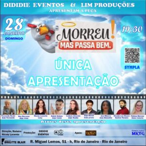 LISTA da REDE IMPERDÍVEL ÚNICA APRESENTAÇÃO COMÉDIA VAMOS RIR ??? MORREU ! MAS PASSA BEM. Teatro Brigitte Blair Rua Miguel Lemos, 51 - Loja H Copacabana Domingo (28/01) às 19H30 Somente com o Nome na Lista da ong REDE, pagam 25, [pode cartão]