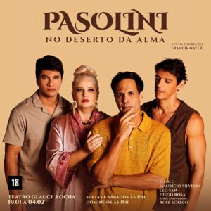 LISTA da REDE IMPERDÍVEL ESTRÉIA PEÇA PREMIADA TEATRO - ARTE PASOLINI - NO DESERTO DA ALMA Teatro Glauce Rocha Av. Rio Branco, 179 Centro - Metrô Carioca Sexta (26/01) às 19H Sábado (27/01) às 19H Domingo (28/01) às 18H Somente com o Nome na Lista da ong REDE, pagam 15, {EM DINHEIRO}.