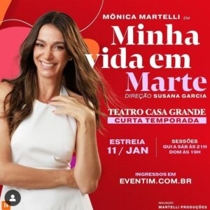 LISTA da REDE IMPERDÍVEL COMÉDIA MÔNICA MARTELLI em: MINHA VIDA EM MARTE Teatro Casa Grande Av. Afrânio de Mello Franco, 290 Leblon – Metrô Jardim de Alan Quinta às 21H Sábado às 21H Somente com o Nome na Lista da ong REDE,pagam 40, {EM DINHEIRO}. Lugares no Balcão.