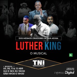 LISTA da REDE IMPERDÍVEL ÚLTIMAS APRESENTAÇÕES MUSICAL LUTHER KING - O MUSICAL Teatro Nova Iguaçu Rua Coronel Bernardino de Melo, 1081 Caonze Nova Iguaçu Quinta (11/04) às 19H30 Sexta (12/04) às 19H30 Sábado (13/04) às 14H30 Sábado (13/04) às 19H30 Somente com o Nome na Lista da ong REDE,pagam 30, -Balcão e 50, na Plateia {EM DINHEIRO}