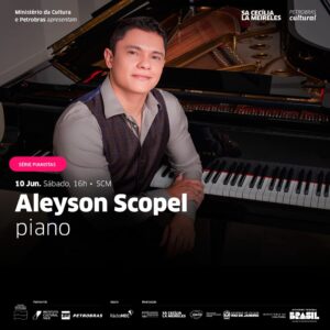 REDE CONVIDA TOTALMENTE GRATUITO IMPERDÍVEL RECITAL SÉRIE PIANISTAS O PIANO de ALEYSON SCOPEL Sala Cecília Meireles Rua da Lapa, 47 Lapa Sábado (10/06) às 16H Semente com o Nome na Lista da ong REDE, direto no balcão da produção.