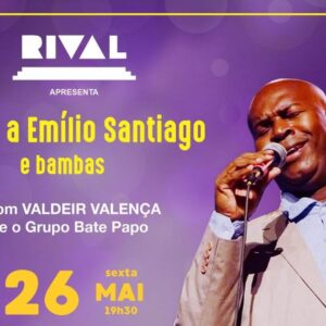 LISTA da REDE IMPERDÍVEL SHOW "TRIBUTO A EMÍLIO SANTIAGO E BAMBAS" VALDEIR VALENÇA E GRUPO BATE PAPO Teatro Rival Rua Alvaro Alvim, 33 Centro - Metrô Cinelândia Sexta (26/05) às 19H30 Somente com o Nome na Lista da ong REDE, pagam 35, {pode cartão}