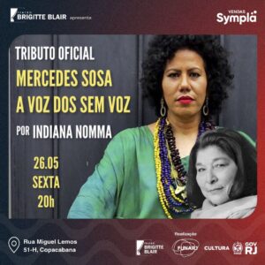LISTA da REDE IMPERDÍVEL SHOW MERCEDES SOSA - A VOZ DOS SEM VOZ Por Indiana Nomma Teatro Brigitte Blair Rua Miguel Lemos, 51 - Loja H Copacabana Sexta (26/05) às 20H Somente com o Nome na Lista da ong REDE, pagam 20, {EM DINHEIRO}