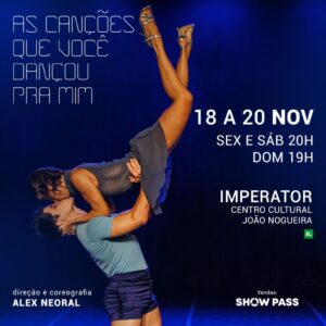 LISTA da REDE ÚNICAS APRESENTAÇÕES IMPERDÍVEL BALLET CONTEMPORANEO AS CANÇÕES QUE VOCÊ DANÇOU PRA MIM Teatro Imperator Rua Dias da Cruz, 170 Méier Sexta(18/11) às 20H Sábado (19/11) às 20H Domingo (20/11) às 19H Somente com o Nome na Lista da ong REDE, pagam 12, {EM DINHEIRO}