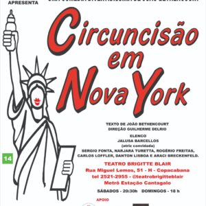 LISTA da REDE IMPERDÍVEL HUMOR JUDAICO CIRCUNCISÃO EM NOVA YORK Teatro Brigitte Blair Rua Miguel Lemos, 51 - Loja H Copacabana Sábado (10/12) às 20H30 Domingo (11/12) às 18H Somente com o Nome na Lista da ong REDE, pagam 20, {EM DINHEIRO}