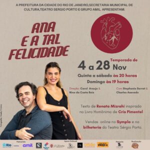 *REDE CONVIDA TOTALMENTE GRATUITO COMÉDIA ANA E A TAL FELICIDADE Teatro Sérgio Porto Rua Humaitá, 163 Humaitá Sexta (26/11) às 20H Sábado (27/11) ás 20H Domingo (28/11) às 19H Somente com o Nome da Lista da ong REDE, direto na bilheteria.