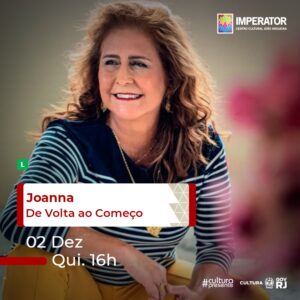 LISTA da REDE SHOW – IMPERDÍVEL A BOA MÚSICA de: JOANA DE VOLTA ao COMEÇO Teratro Imperator Rua Dias da Cruz, 170 Meier Quinta (02/12) às 16H Somente com o Nome da Lista da ong REDE, pagam 20, {EM DINHEIRO}.