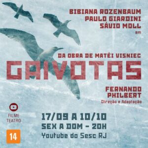Gaivotas é um espetáculo teatral baseado na peça Nina, de Matéi Visniec, e propõe um novo desfecho para a obra-prima de Anton Tchékhov, A Gaivota. Nina, Boris e Konstantin se reencontram depois de 15 anos. Agora, mais maduros e amargurados pelo tempo, precisam lidar com as pontas soltas deixadas pelas escolhas que fizeram ao longo de suas vidas. Gaivotas traz uma mensagem de esperança e superação. As personagens são como gaivotas, mortas e empalhadas nas lembranças do passado, mas nada impede que no universo de Visniec elas não possam ter uma nova chance...
