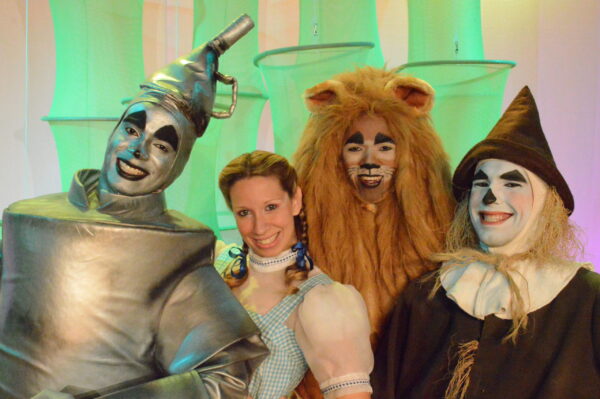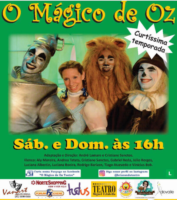 A peça conta a história da menina Doroty que foi levada a Terra de Oz por um tornado. Para voltar para casa, a menina, com auxílio de um espantalho, homem de lata e um leão, precisa encontrar o poderoso Mágico de Oz, único capaz de mandá-la de volta para o lugar de origem. Porém precisa enfrentar a Bruxa Má do Oeste para conseguir este retorno.