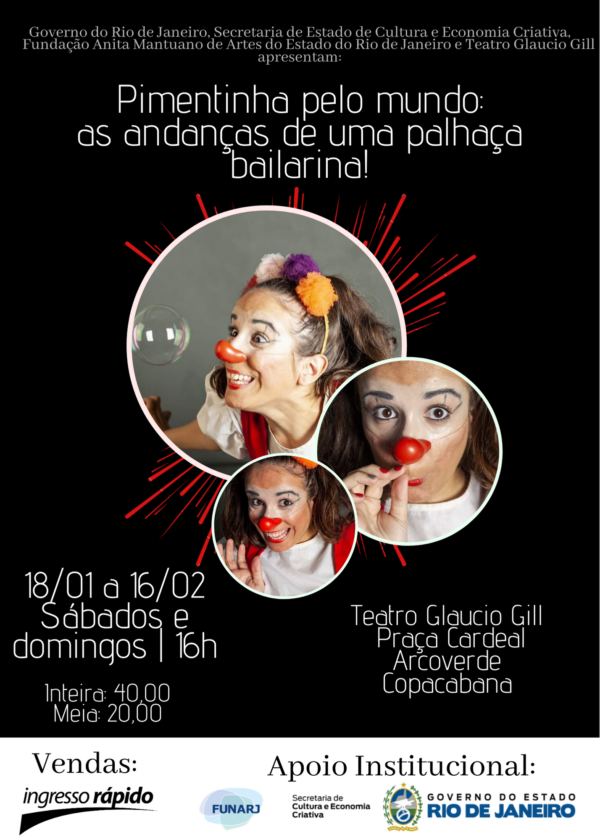 Excelência na iluminação e sonorização cuja responsabilidades são de Alan Hauer e Humberto Medeiros respectivamente. Se destaca, ainda, a presença de música autoral para fechar a apresentação. ‘’Pimentinha pelo mundo: As andanças de uma palhaça bailarina“ em cartaz até 16 de fevereiro no Teatro Glaucio Gil (Copacabana). By Anna Domingues por Artéria