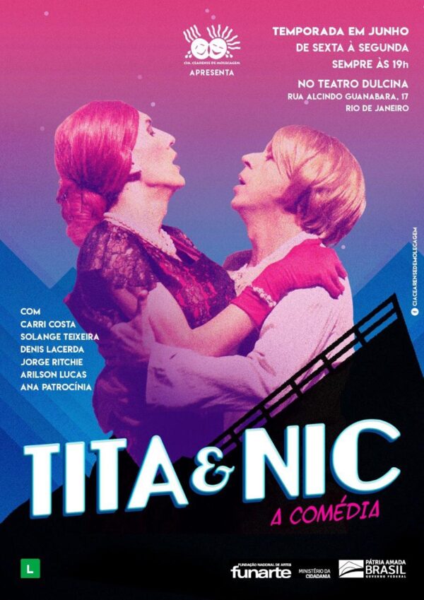 A peça que completa mais de DUAS DÉCADAS, já foi assistida por mais de 1 MILHÃO DE PESSOAS e tornou-se o espetáculo com MAIS TEMPO EM CARTAZ no NORTE E NORDESTE. Será a primeira temporada no Rio de Janeiro e na região Sudeste. “Tita & Nic” estará do dia 08 à 30 de Junho, no teatro Dulcina, Sempre as sextas, sábados, domingos e segundas, às 19h.